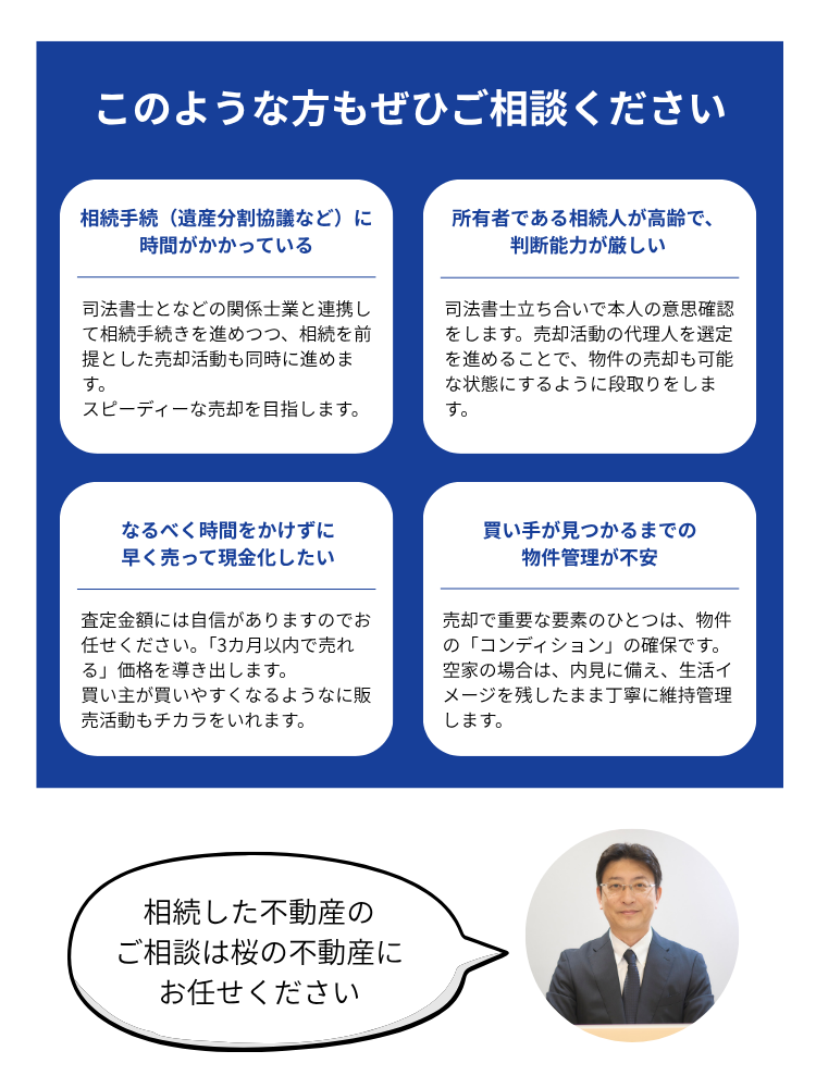 一戸建ての住宅、土地、マンションでも、相続した不動産の売却では分割や名義変更といった手続きが必要となります。期限や要件を意識して売却を実現しましょう。